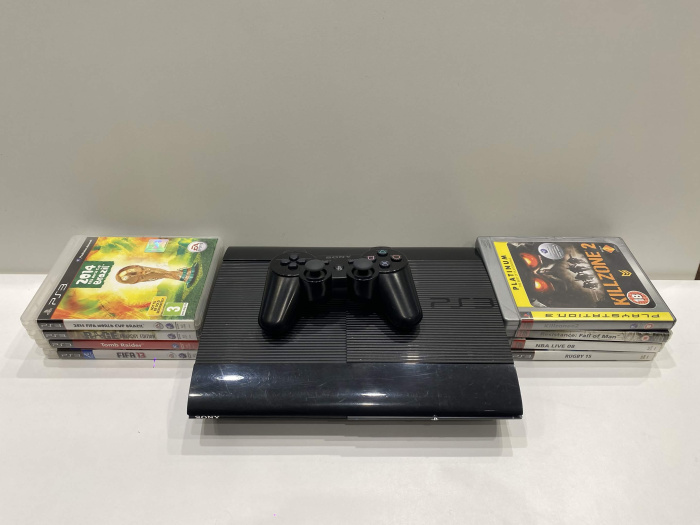 PlayStation 3 SuperSlim konsool (12GB) + 8 mängu (kasutatud)