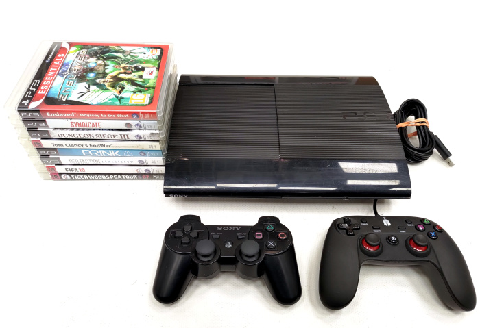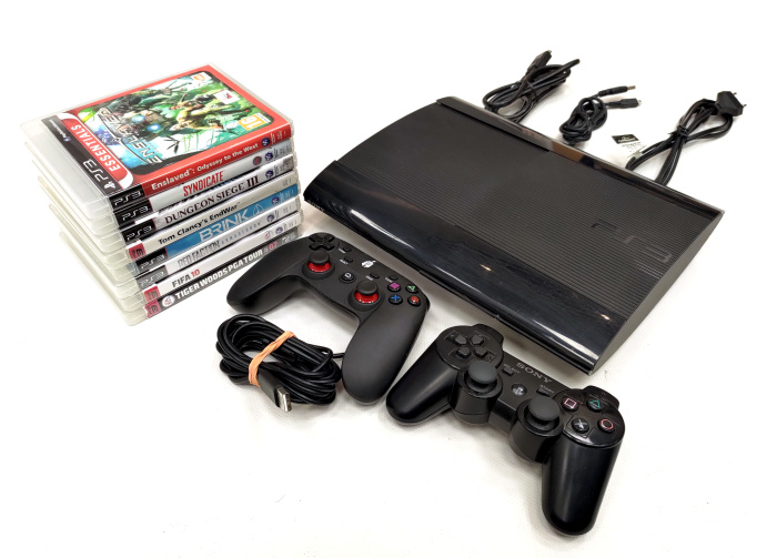 PlayStation 3 SuperSlim konsool (12GB) + 8 mängu + lisapult (kasutatud)
