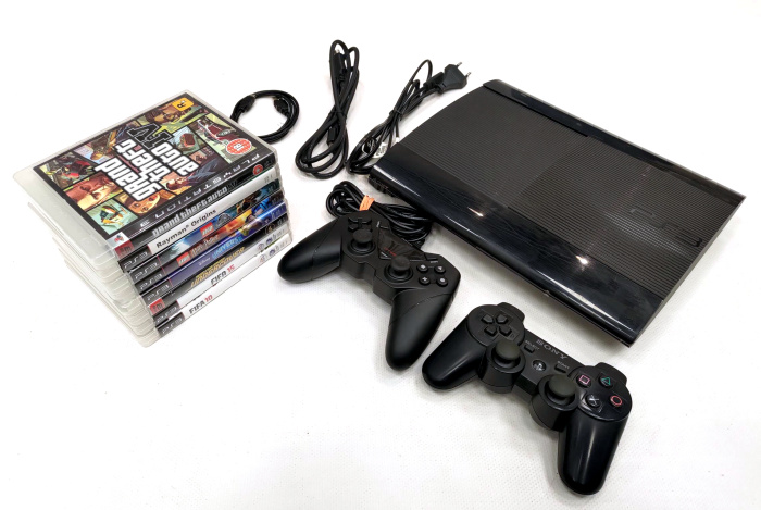PlayStation 3 SuperSlim konsool (500GB) + lisapult + 8 mängu (kasutatud)