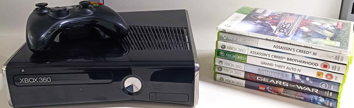 Xbox 360 Slim konsool (250GB) + 7 mängu (kasutatud)