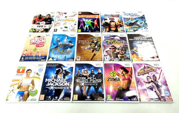 Wii konsool (must) + 15 mängu (kasutatud)