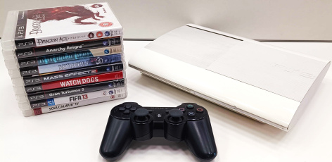 PlayStation 3 SuperSlim konsool (12GB) + 8 mängu (kasutatud)