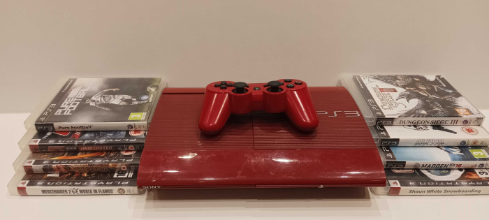 PlayStation 3 SuperSlim konsool (punane) (12GB) + 8 mängu (kasutatud)